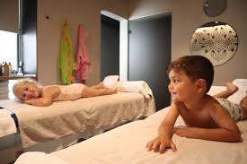 Parce qu’il n’y a pas que les grands qui ont le droit d’être chouchoutés, un massage corps entier, adapté aux enfants. Ils sont reçus dans cette formule ensemble, dans la même salle, à deux.
